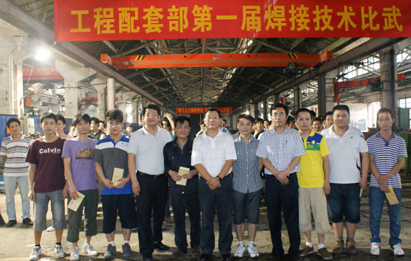 为进一步提高工程配套料斗产品的焊接质量,逐步提升一线工人的技术业务素质,激发全体员工“比技术、争一流”的积极性,2011年8月6日-8月7日,工程配套部、品质保障部、综合管理部联合在车间现场举行了“第一届焊接技术比武”。此次技术比武为全斗焊、侧斗身和后墙板三个工位的高速高效高质焊接。经过激烈的角逐,在38名参赛员工中产生了8名优秀岗位能手。