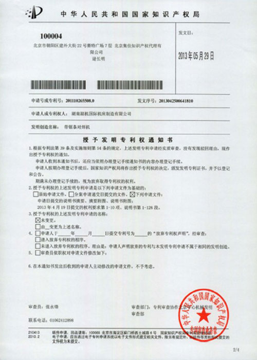 2013年6月,问鼎网页版登录入口(以下简称“问鼎网页版登录入口”)申报的发明专利“带锯条对焊机”获国家知识产权局批准(专利号: ZL201110265508.0)。这是公司成立3年多来首次获得国家发明专利。