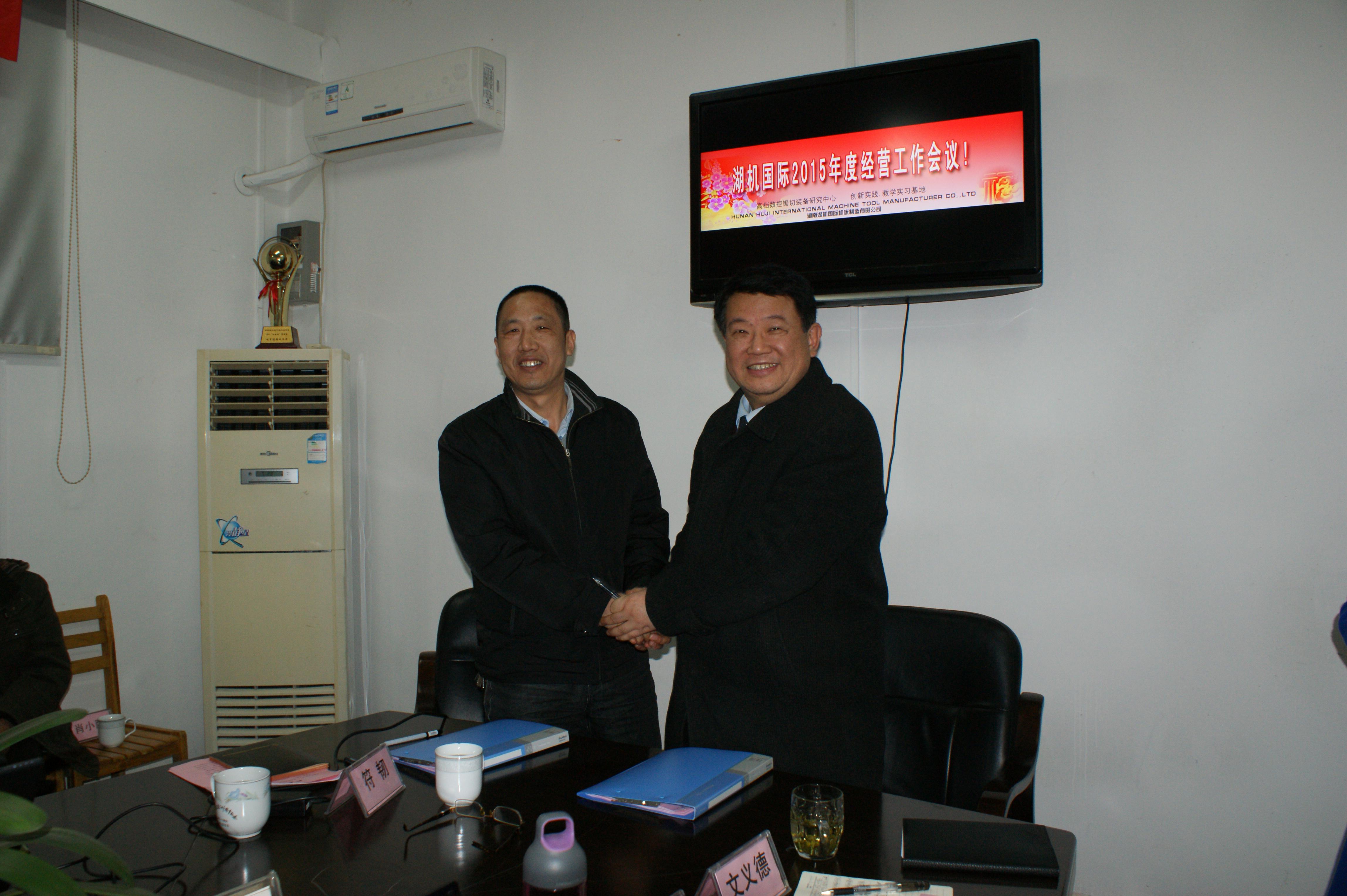 会上,会议首先听取了符韧总经理题为《坚定信心,破冰前行》的2015年工作总结及2016年工作思路报告。符总指出,2015年在国家宏观经济增速持续下行的大环境下,公司的经营业绩受到了创业6年来市场最强烈的冲击。2016年公司各项工作应以董事会提出的2016年工作思路为行动纲领,全面贯彻落实董事会新时期提出的两大调整和打好三大攻坚战的工作要求。马斌总助、柳勇总助、罗润湘副经理、肖雪梅总助、胡伟部长分别代表工程配套分公司、环卫机械配套分公司、锯床分公司、管理办公室、财务审计部与公司总经理签订了2016年目标责任书和工作任务书。公司总工程师叶钧针对2015年锯床改进提升和2016年公司科技工作作了主题发言。