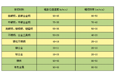 2.锯削速度及锯切效率建议参考表