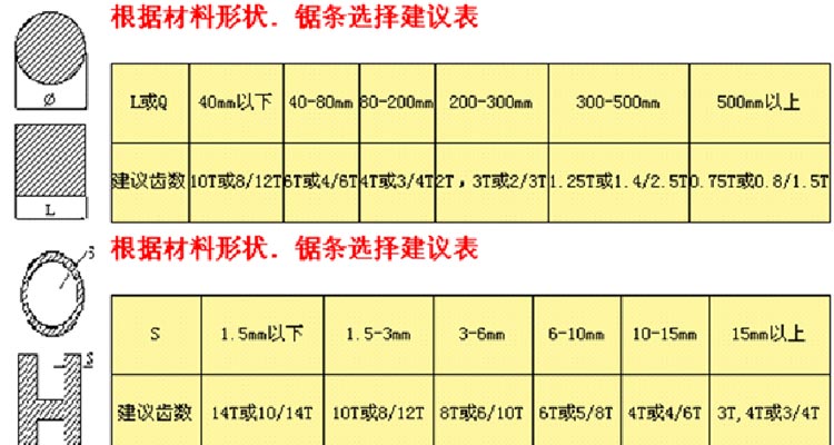 3.锯条选择建议表