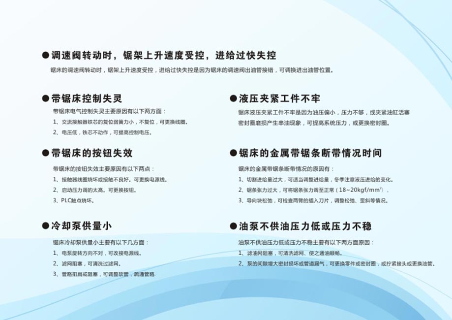 带锯床的常见故障及解决方法